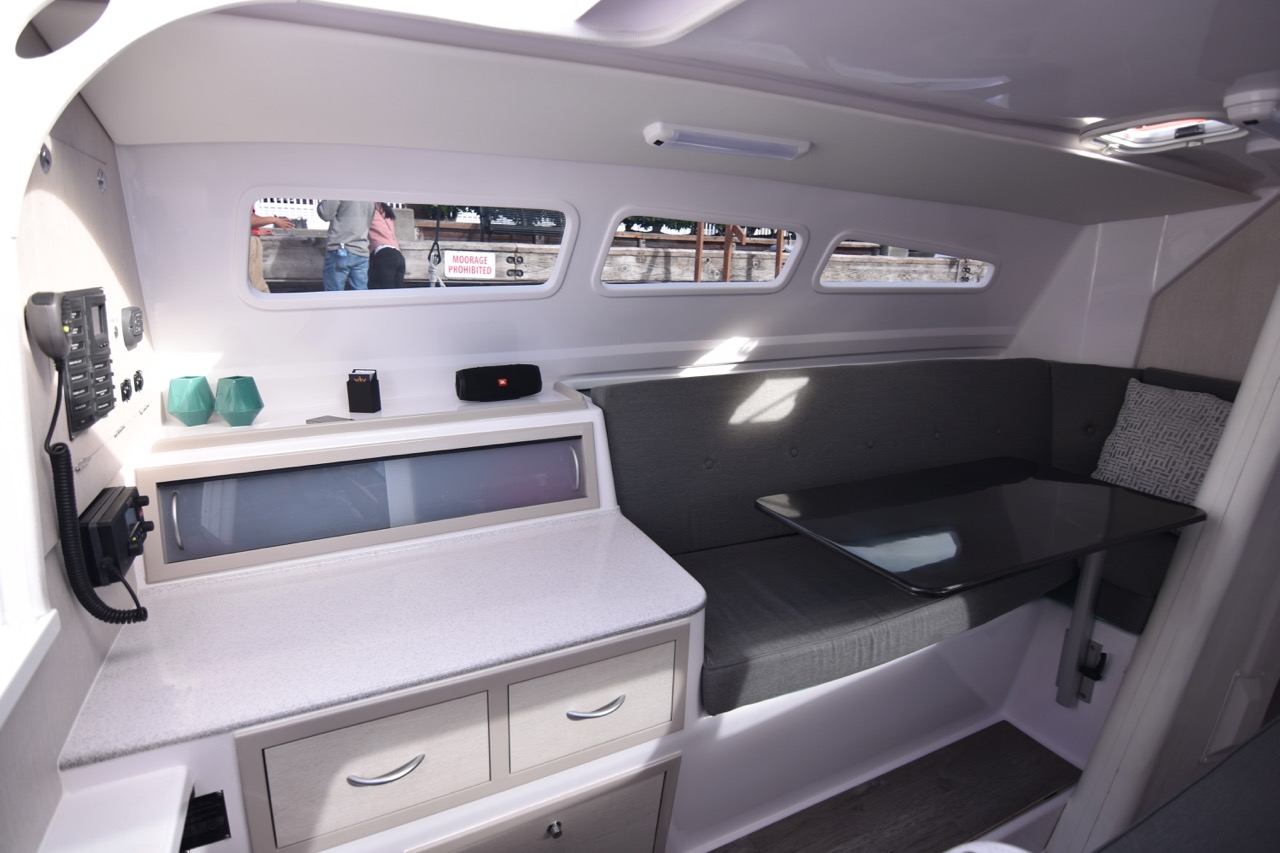 This 31ft 10inch model replaces the corsair 31. Corsair have sold 303 of the previous model and the Corsair 970 is roomier with more focus on comfort without sacrificing performance. The Corsair 970 Sport takes the trailerable folding trimaran concept forward by using a longer aluminium mast to provide a bigger rig and upgraded Aramid sails to provide more power to the 970 hull.